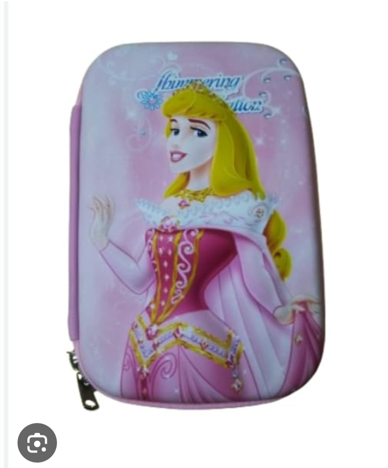 A durable hard shell pencil case adorned with a princess illustration in elegant pink. Features a smooth zipper closure, spacious interior for storing pens, pencils, erasers, and small stationery, making it a delightful accessory for school-going children.