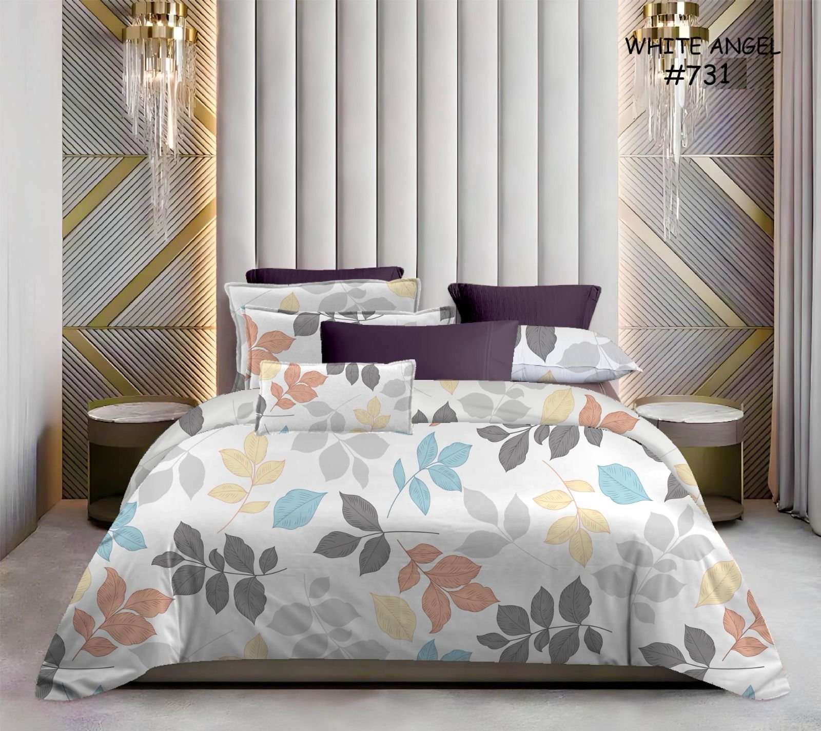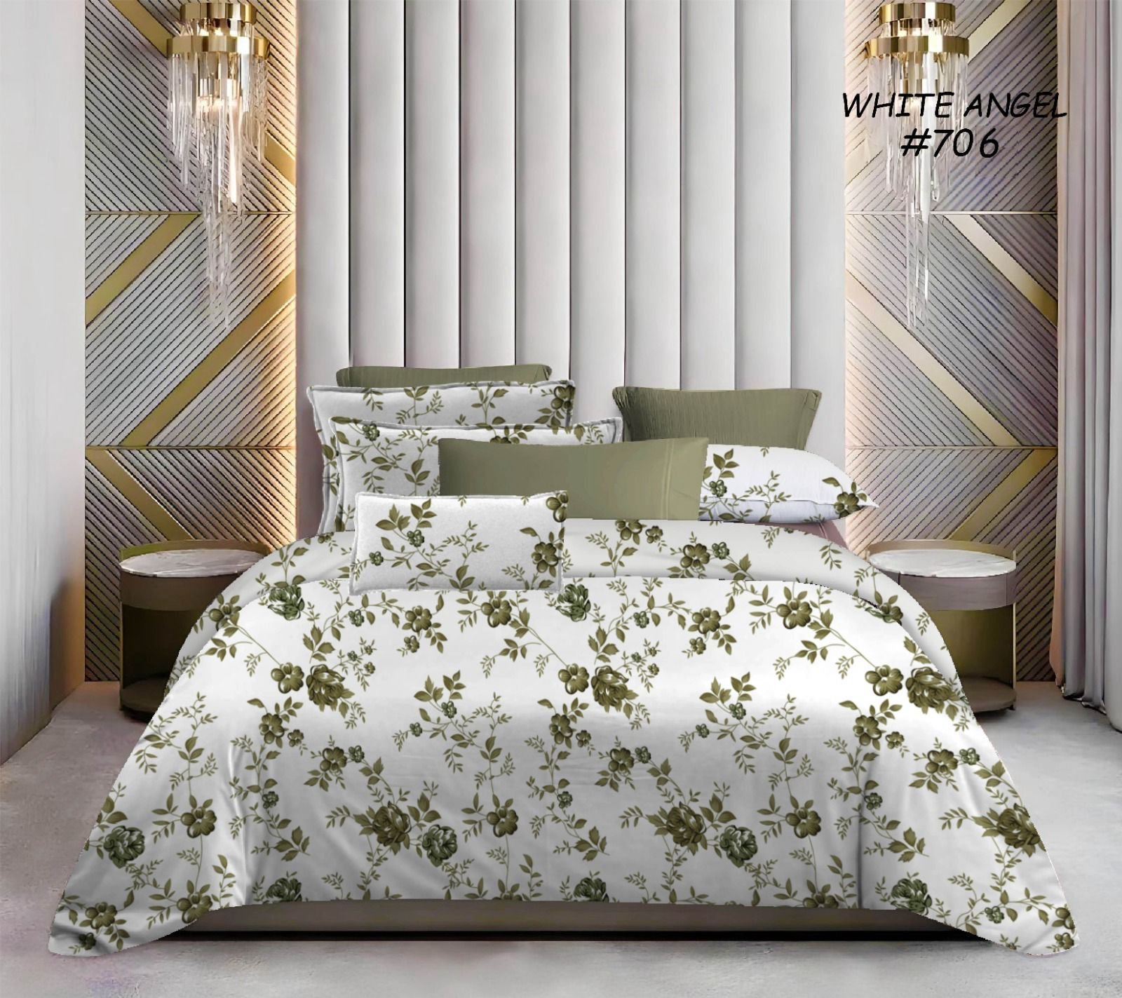 An enchanting bedsheet set adorned with delicate green roses and botanical foliage patterns on a pure white base. Paired with coordinating olive green pillow covers, this design captures the essence of an English garden, bringing natural beauty and tranquility to bedroom décor.