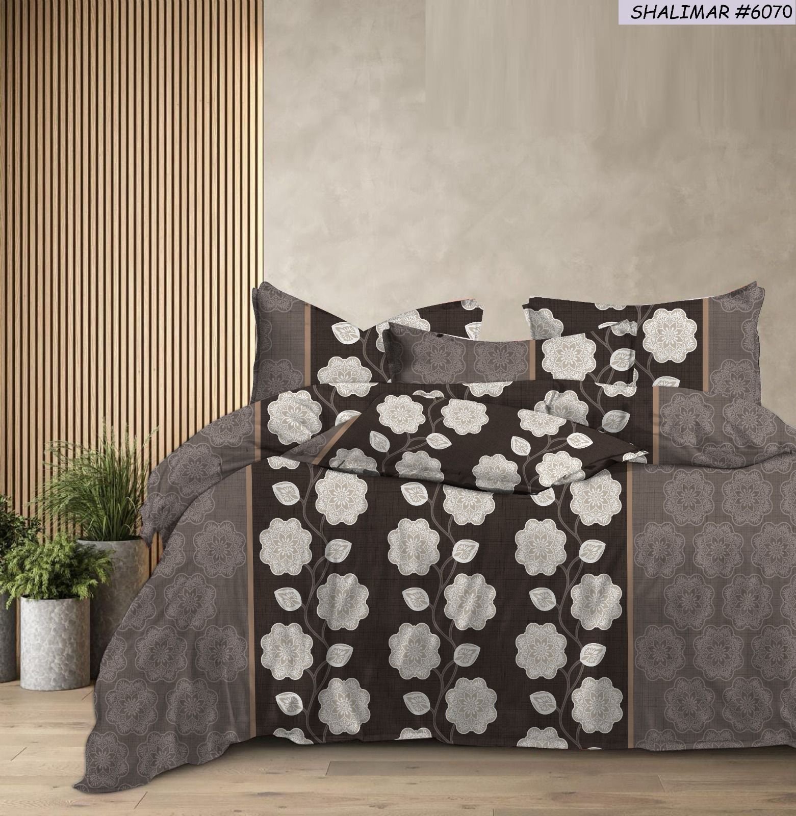 A delicate bedsheet set showcasing beautiful watercolor-style flowers in soft pink, blue, and grey hues on a pristine white background. Paired with coordinating grey pillow covers, this romantic floral design brings a fresh, feminine touch to any bedroom while maintaining the premium quality standards of the White Angel collection.